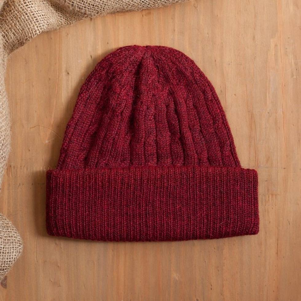 Cranberry Red 100 Alpaca Soft Cable Knit Hat from Peru 'Comfy in Burgundy' Item ID: 2669891373