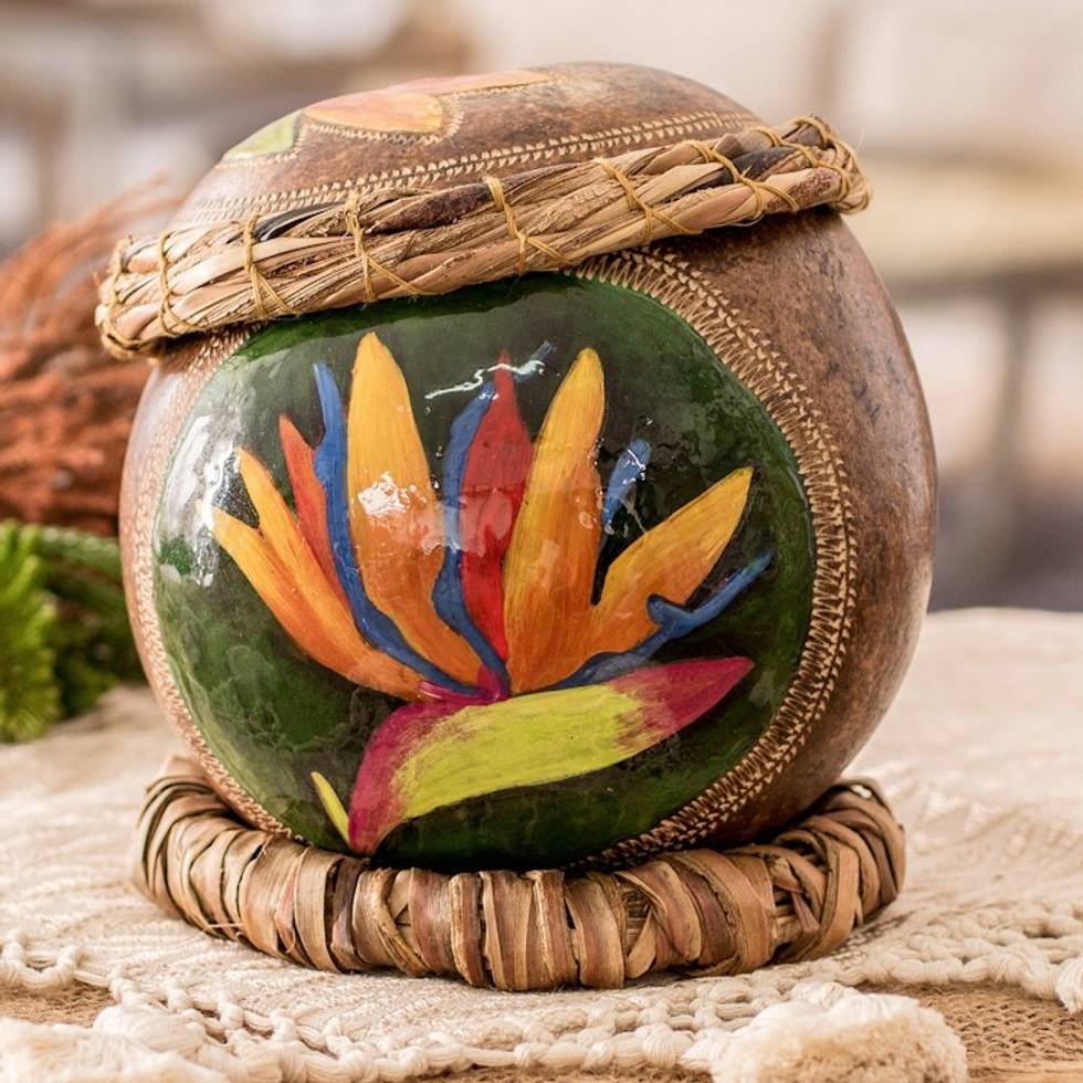 Crane Flower-Themed Painted Dried Gourd Decorative Accent 'Crane Flower' Item ID: 2671770798