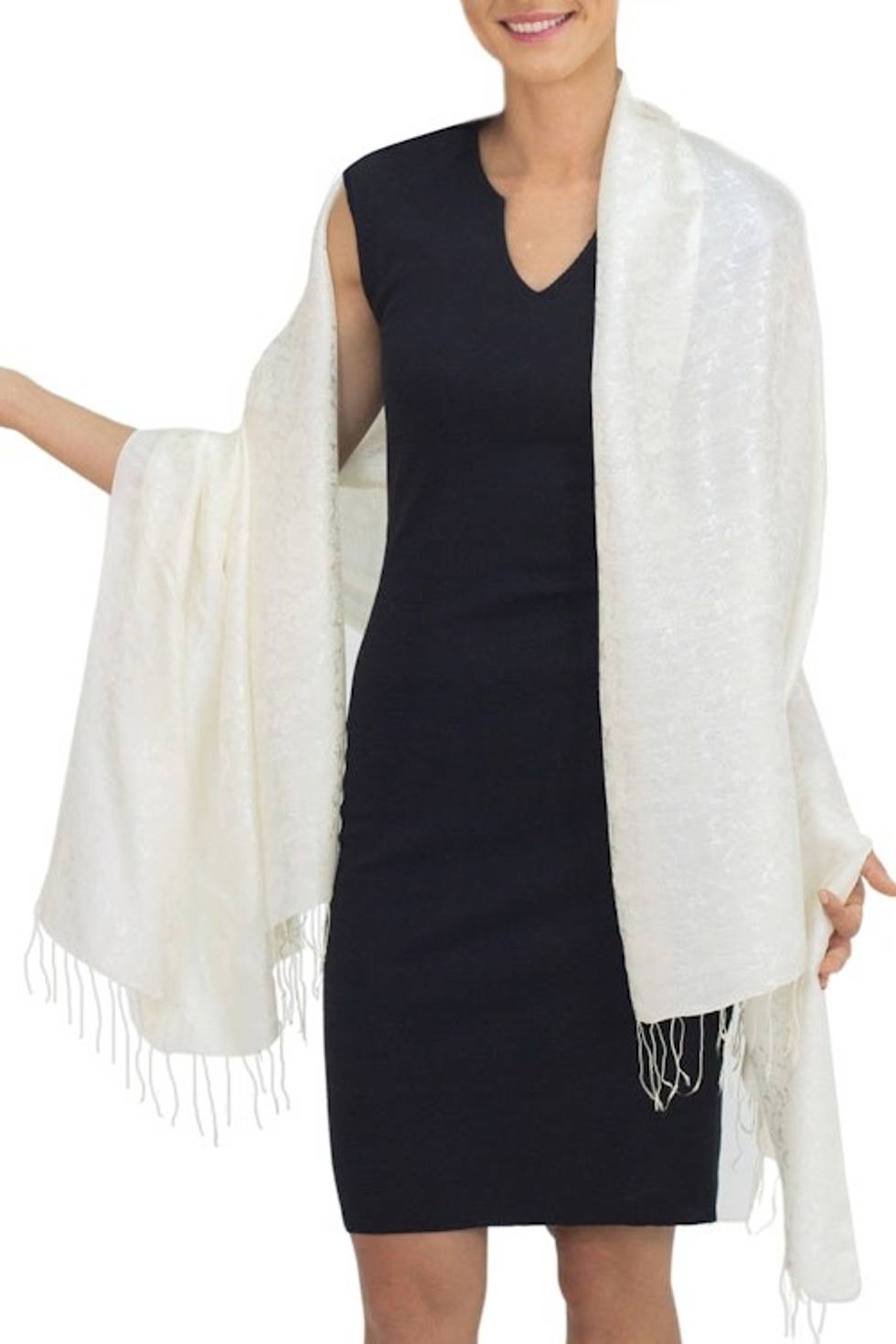 Cream Colored Rayon and Silk Blend Jacquard Shawl 'Mandarin Ivory' Item ID: 2671802290