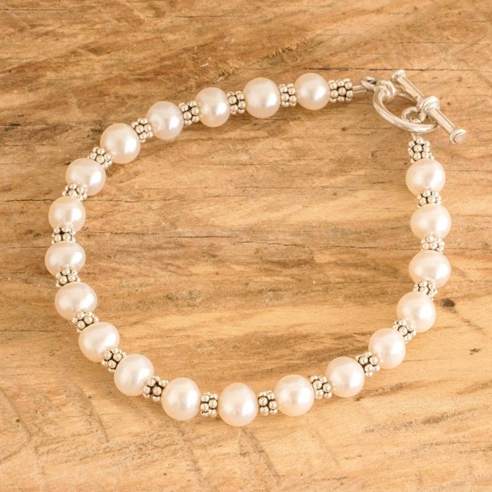 Cream Cultured Pearl Beaded Bracelet from Costa Rica 'Marine Victory' Item ID: 2669933874