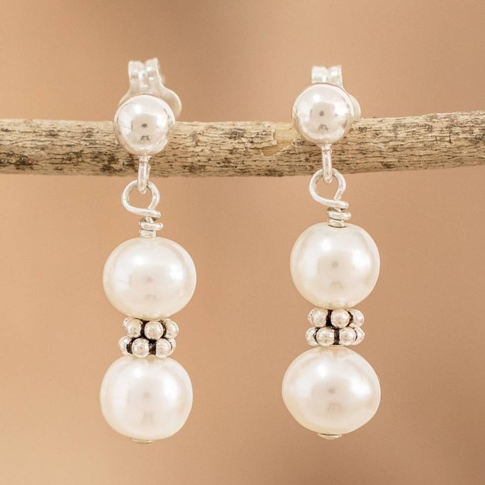Cream Cultured Pearl Beaded Dangle Earrings from Costa Rica 'Marine Victory' Item ID: 2671771630