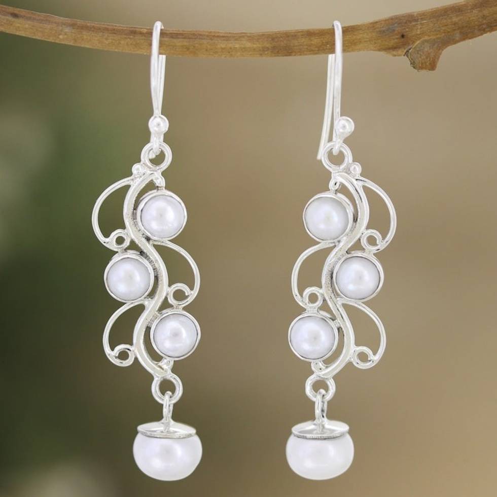These earrings are absolutely gorgeous - creamy pearls coupled with ornate silver work. The weight and length combine to create a dance hanging from your ears!