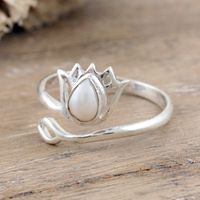 Cream Pearl and Sterling Silver Lotus Wrap Ring from India 'Pearl Lotus' Item ID: 2671786608