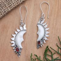 Crescent Moon Garnet Dangle Earrings 'Love in the Moonlight' Item ID: 2671820998