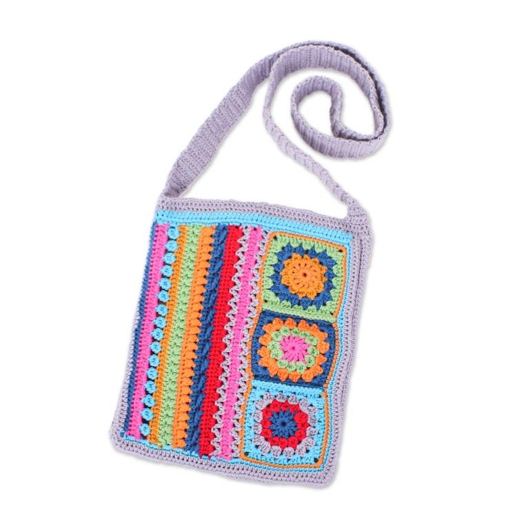 Crocheted Colorful Sling with Coconut Shell Button Closure 'Daily Colors' Item ID: 2671797744