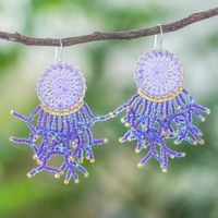 Crocheted Dreamcatcher Earrings with Orchid Glass Beads 'Dreaming Tree in Orchid' Item ID: 2671800469