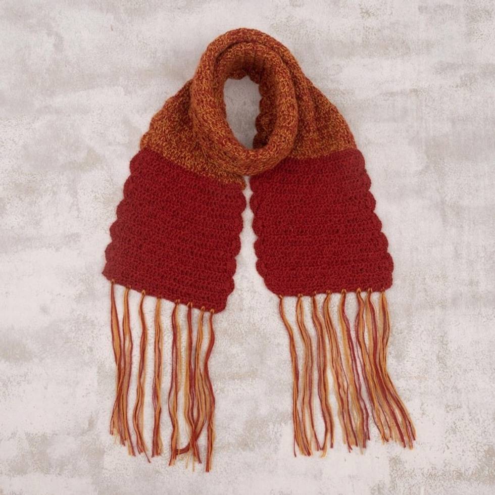 Crocheted Fringed 100 Alpaca Scarf from Peru 'Winter Fire' Item ID: 2671691029