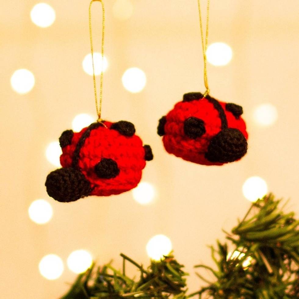 Crocheted Lady Bug Hanging Ornaments from Mexico Pair 'Holiday Ladybugs' Item ID: 2671808264