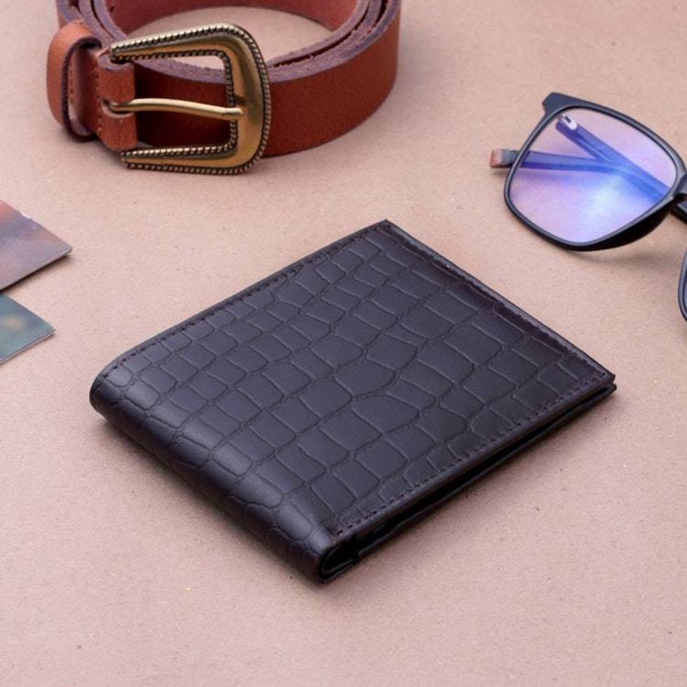 Crocodile-Patterned 100 Leather Bi-Fold Wallet in Brown 'Wild Opulence' Item ID: 2676664475