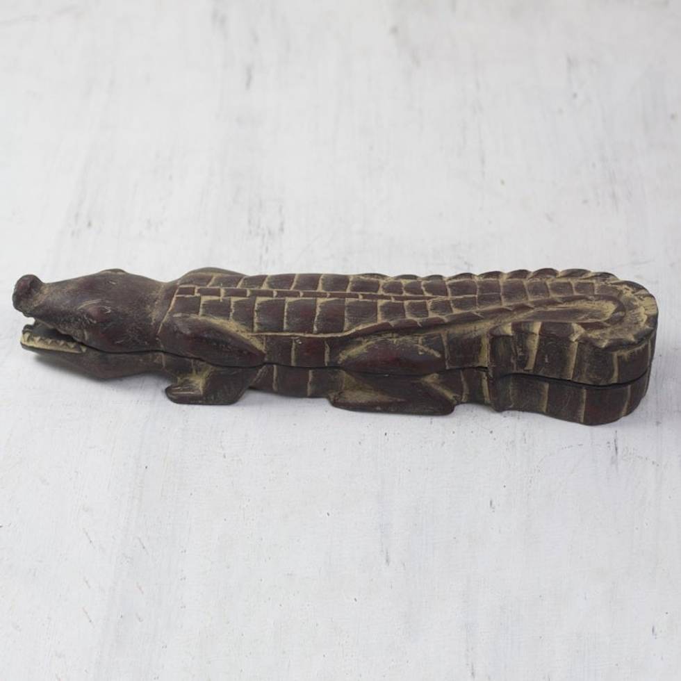Crocodile Shaped Oware Table Game Carved by Hand 'Crocodile's Challenge' Item ID: 2671816036