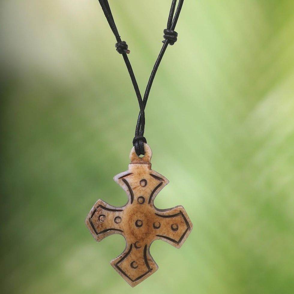 Cross Bone Pendant Necklace with Leather Cord from Bali 'Sacred Bone' Item ID: 2669922788