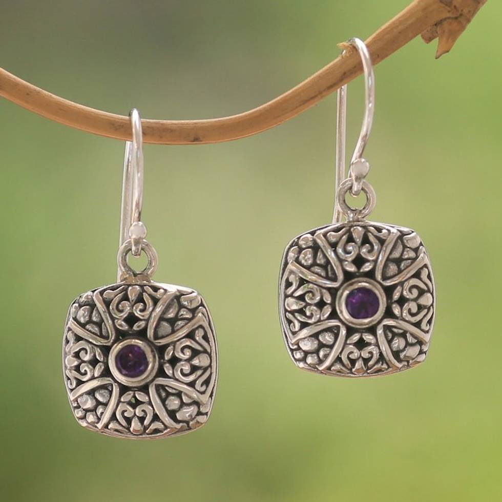 Cross Motif Amethyst Dangle Earrings from Bali 'Bali Cross' Item ID: 2671735437