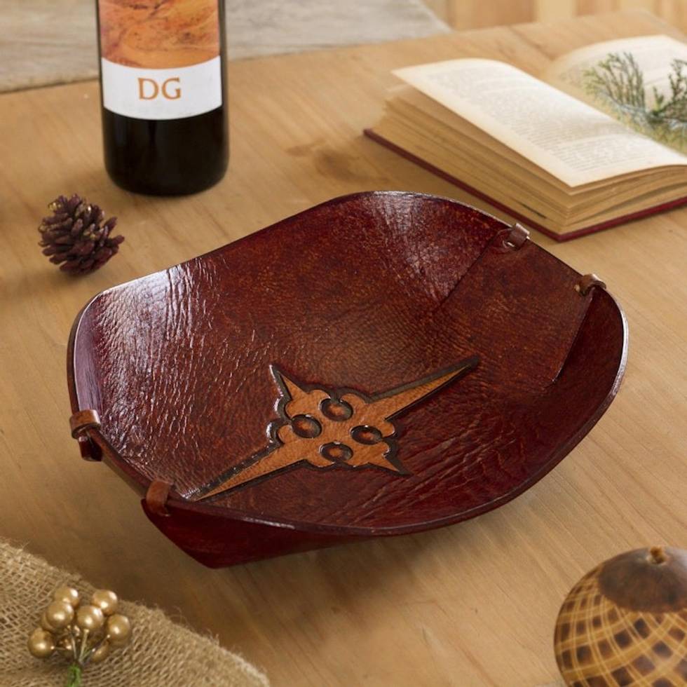 I bought this leather catch-all "bowl" to gift but kept and displayed it instead. A visitor, upon noticing it, was so enamored by the charm of it's masculine yet simple design, I then realized who the gifted would be!