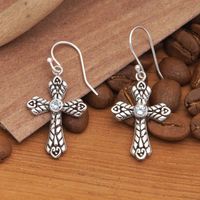 Cross-Shaped Sterling Silver Blue Topaz Dangle Earrings 'Ocean Cross' Item ID: 2671764546