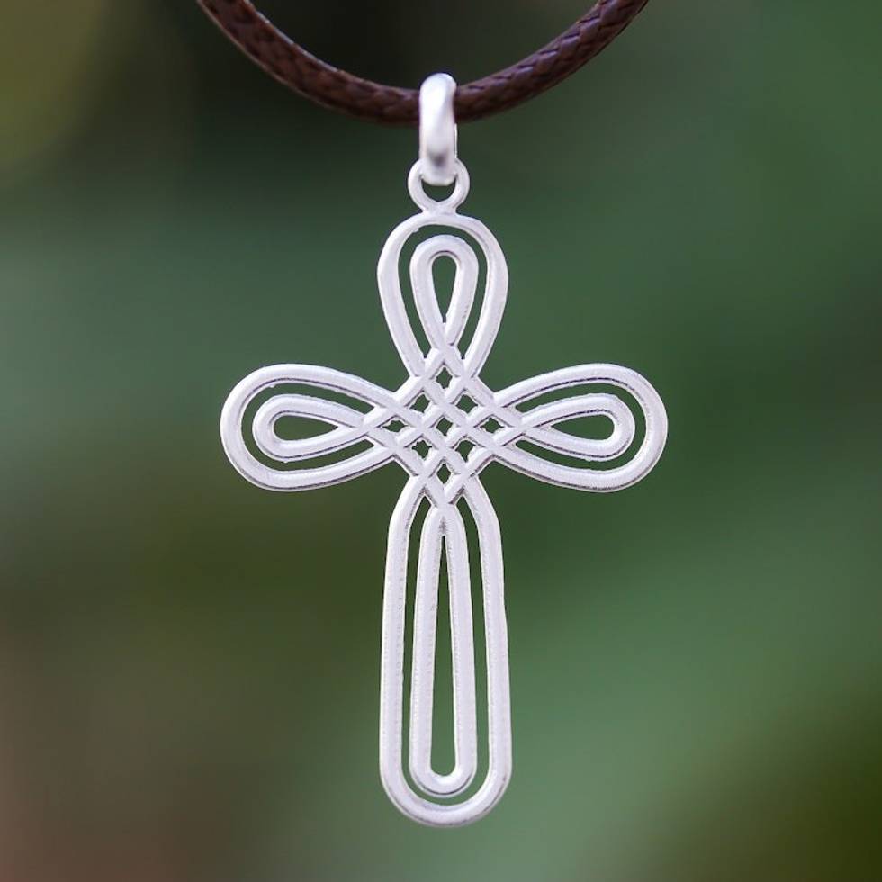 Cross-Shaped Sterling Silver Pendant Necklace from Thailand 'Pretty Cross' Item ID: 2669925753