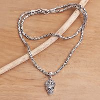 Crowned Skull Sterling Silver Pendant Necklace 'King Skull' Item ID: 2669923368