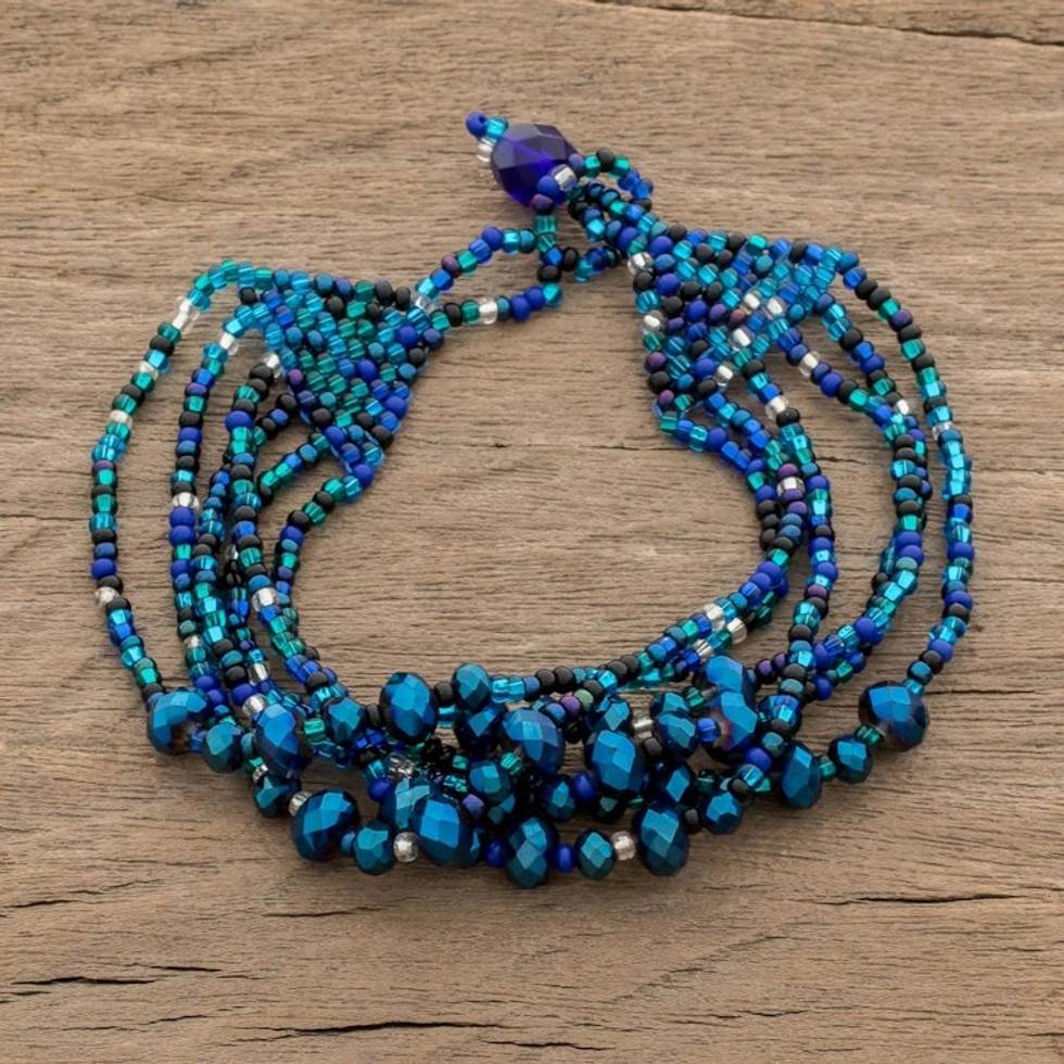 Crystal and Glass Beaded Strand Bracelet in Blue 'Nocturnal Brilliance in Blue' Item ID: 2669933904