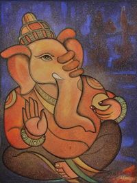 "Besides art, I was also very much interested in photography and took a six-month course in that field upon completion of my 12th standard. After that, I did a four-year diploma course in painting at the Bharatiya Vidya Bhavan Institute of Art and Culture. I was so fascinated by the beauty of art that I couldn't deny the fact that I was in love with it. As I learned every stroke, each line, I was more and more attracted to the world of art. In 1993, after my four-year painting course, I continued this journey and received a BA degree in fine arts. Here I came in contact with a variety of art media and enjoyed every bit of it. I don't want to be bound by any particular theme or style and have tried my hand at almost everything connected with art, like wood sculpting, clay molding, metal, fiberglass, wrought iron, ceramics, etc. I did quite a bit of work in wrought iron and metal sculpting and got a good response. I love working on Ganesha themes and have done quite a lot of pieces on this deity.