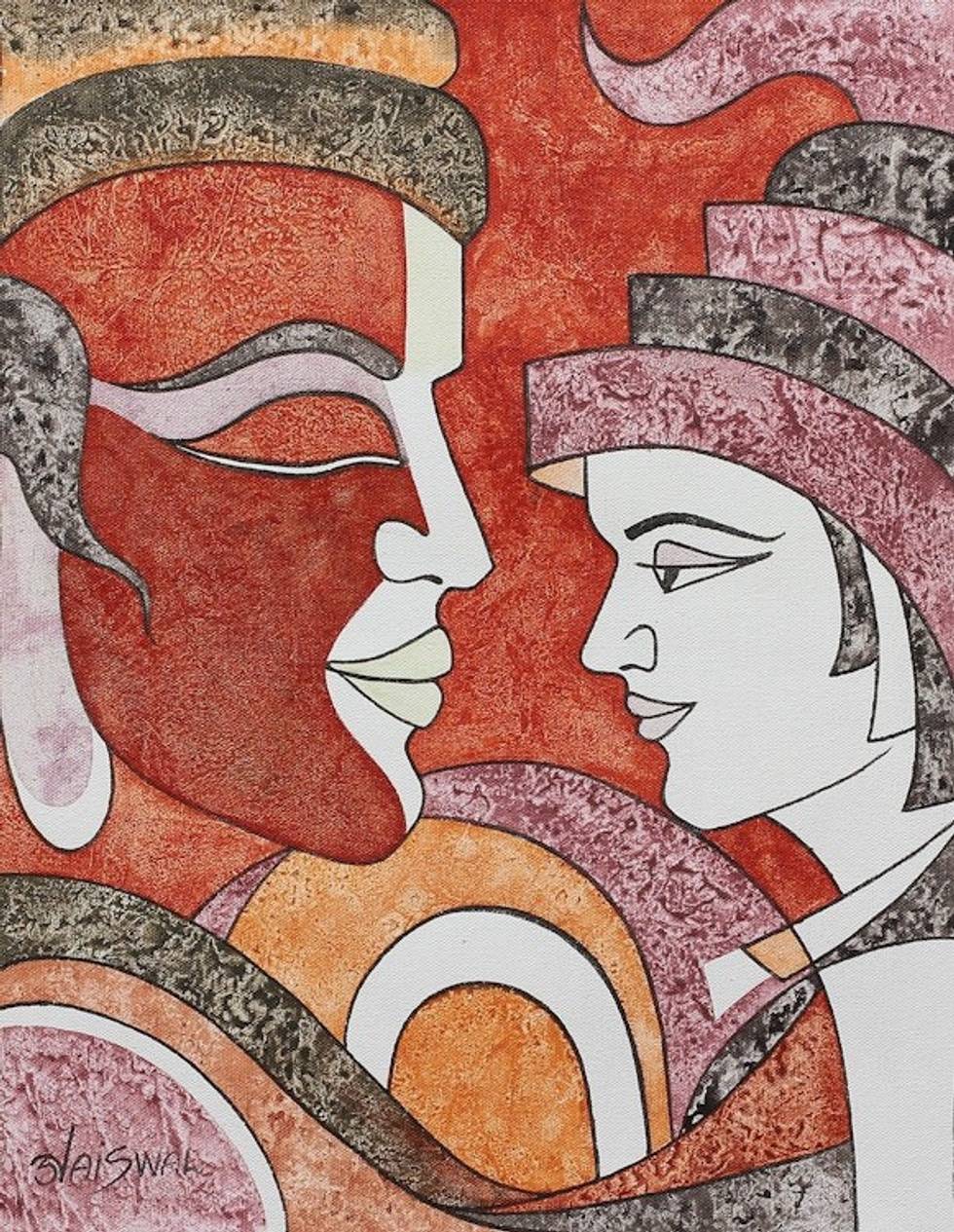 Cubist Painting of a Father and Son from India 'Father and Son' Item ID: 2669889345