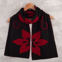 Cultural Floral Red and Black Reversible Alpaca Blend Scarf 'Red Retama Emotions' Item ID: 2669909242