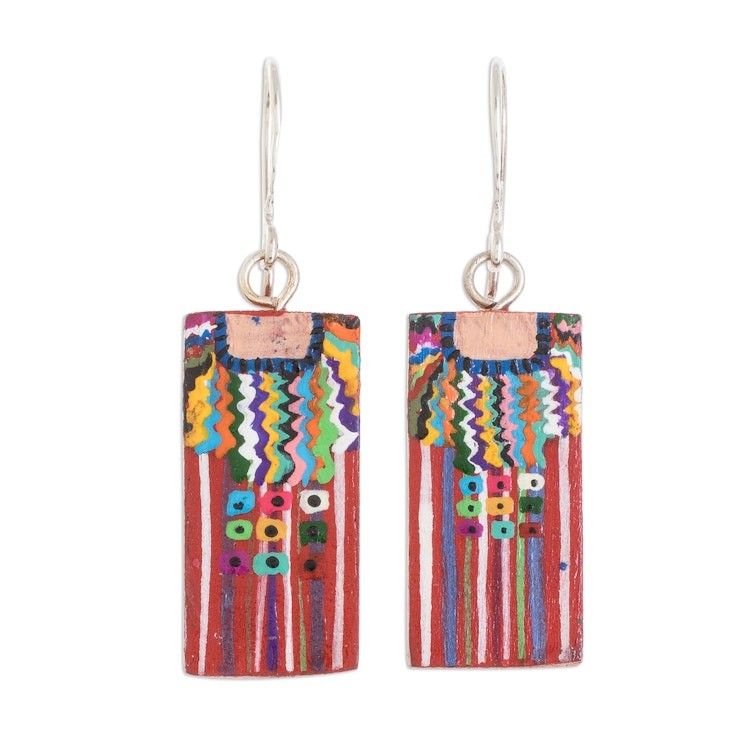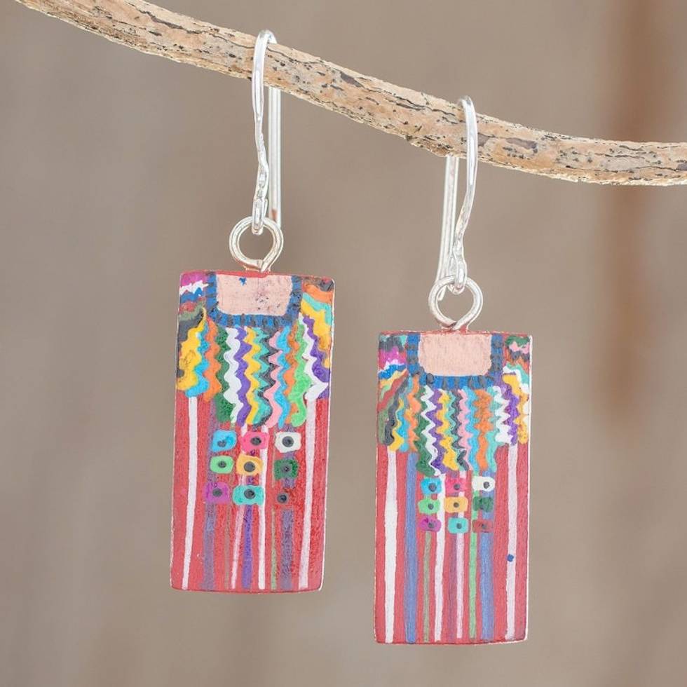 Cultural Hand-Painted Wood Dangle Earrings from Guatemala 'San Juan La Laguna' Item ID: 2671777293
