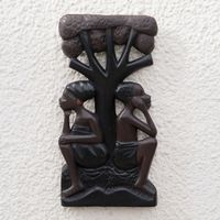 "Sitting wistfully under a tree, a husband and wife deliberate on the activities for the following day. 'It is customary for a couple to sit at sundown and plan the next day,' explains Eric Darko. Vividly detailed, this wall adornment is called Eden na afei yen nye in the native Akan language."