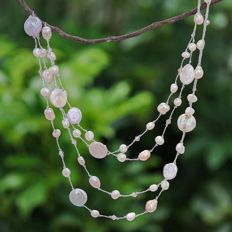 This beautiful pearl necklace is just the right piece to fill in a neckline. It is sophisticated - gives a classy touch to an outfit.