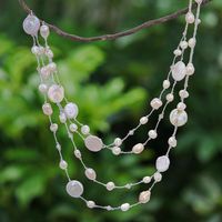Cultured Freshwater Pearl and Glass Beaded Necklace 'Glowing Coins in Peach' Item ID: 2671641518