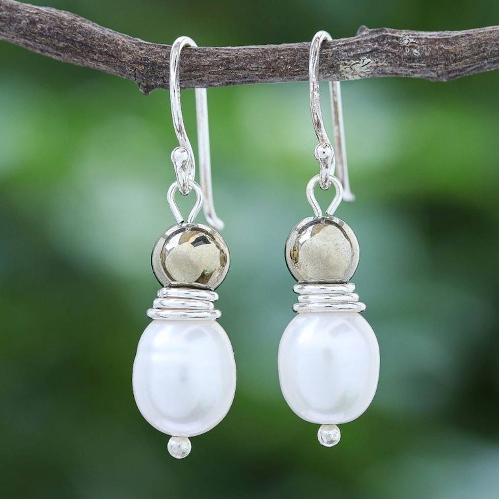 Cultured Freshwater Pearl and Hematite Dangle Earrings 'By the Sea' Item ID: 2671800209
