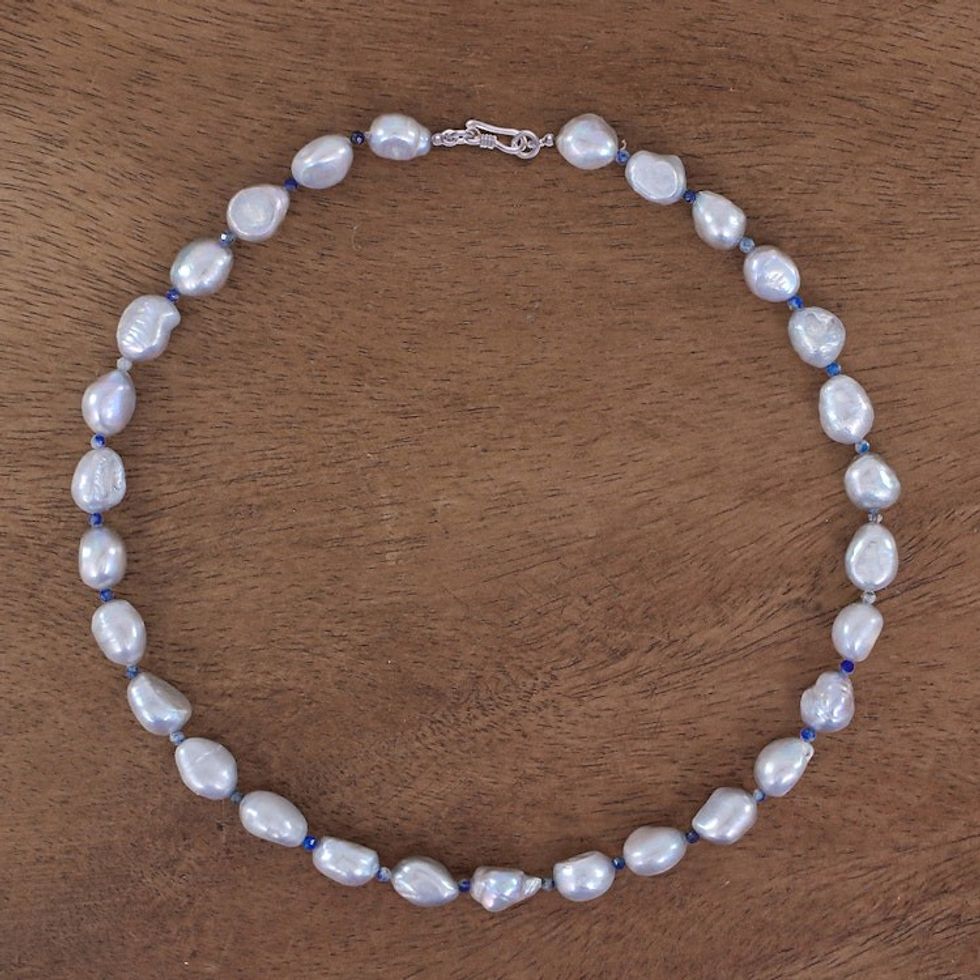 Cultured Freshwater Pearl and Lapis Lazuli Beaded Necklace 'Sea Journey in Blue' Item ID: 2671799711
