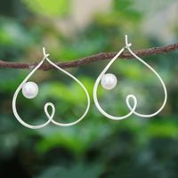 Cultured Freshwater Pearl and Sterling Silver Heart Earrings 'Loopy for Love' Item ID: 2671799925