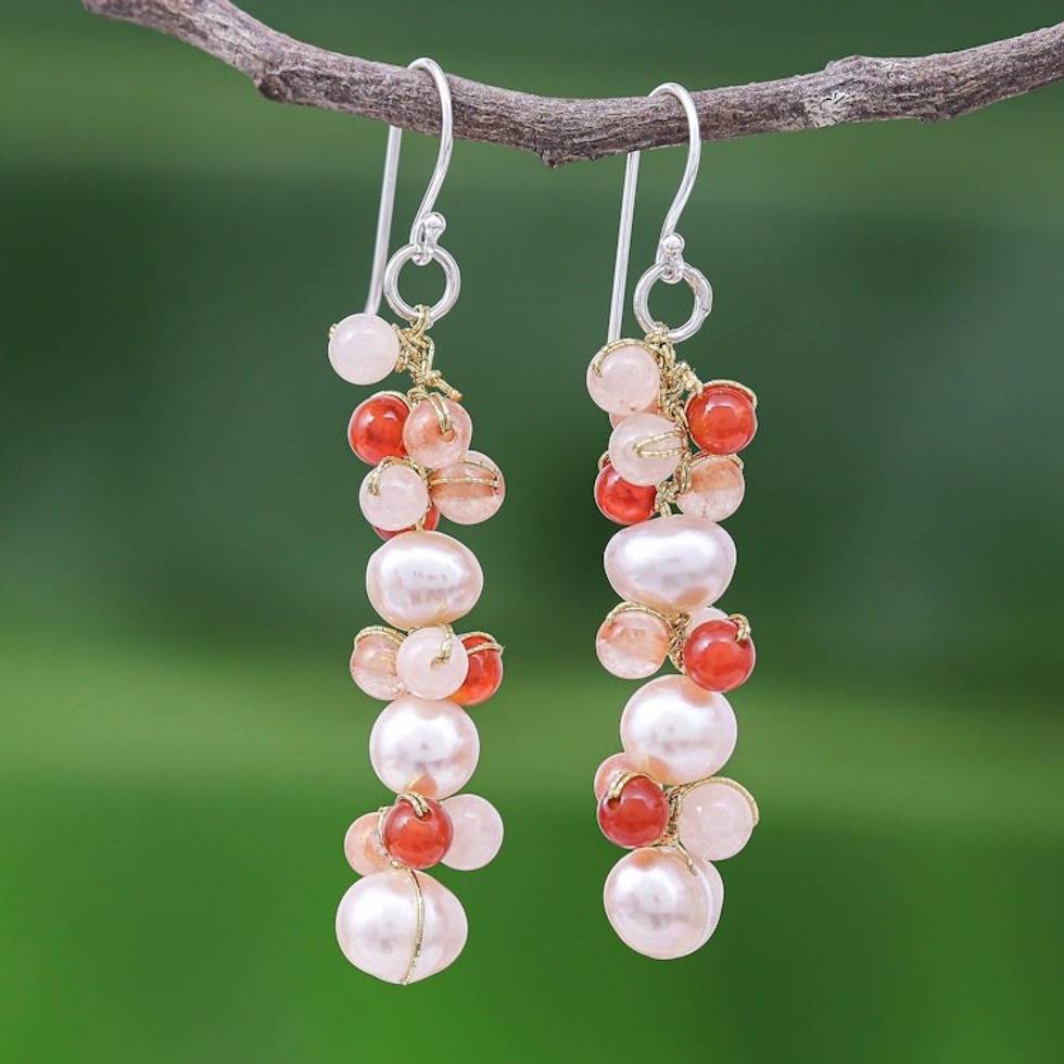 Cultured Freshwater Pearl Quartz Chalcedony Dangle Earrings 'Bellini Bubbles' Item ID: 2669925861