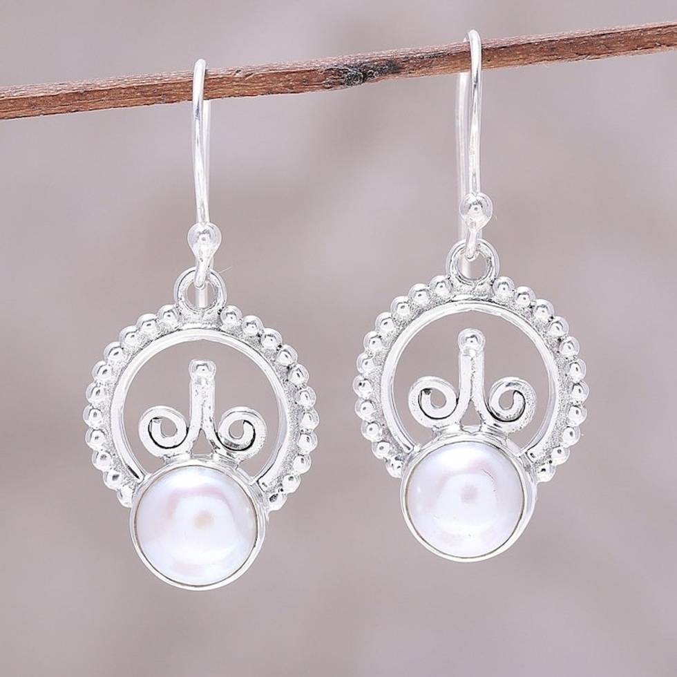 Cultured Freshwater Pearl Sterling Silver Dangle Earrings 'Crowned Pearl' Item ID: 2671791719