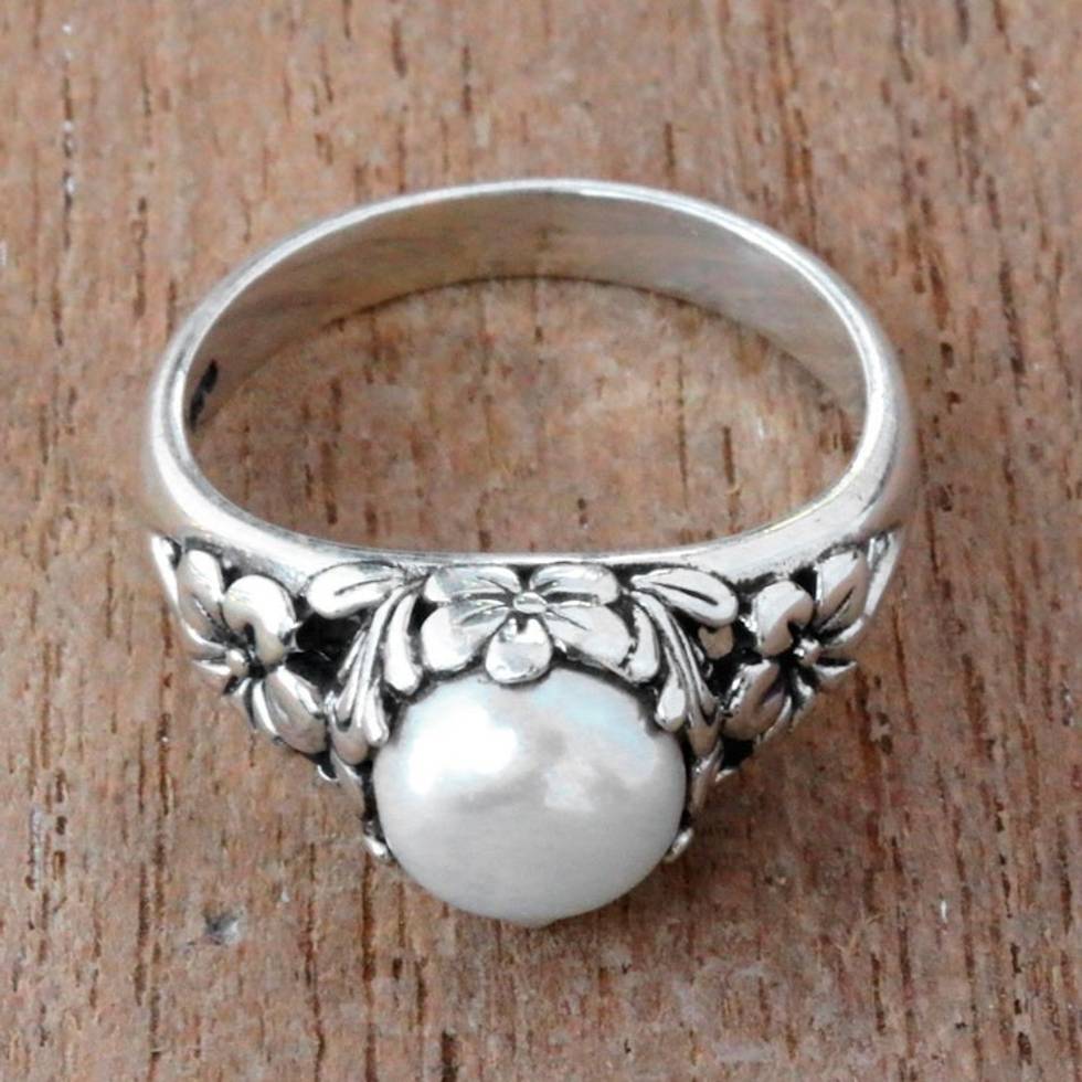 Cultured Freshwater Pearl Sterling Silver Solitaire Ring 'Eden's Promise in White' Item ID: 2670122160
