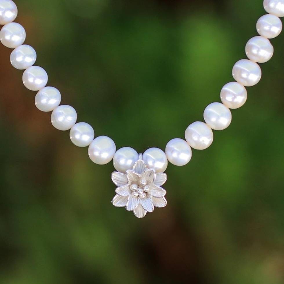 Cultured Freshwater Pearl Strand with Karen Silver Pendant 'Romantic Lily' Item ID: 2671801198