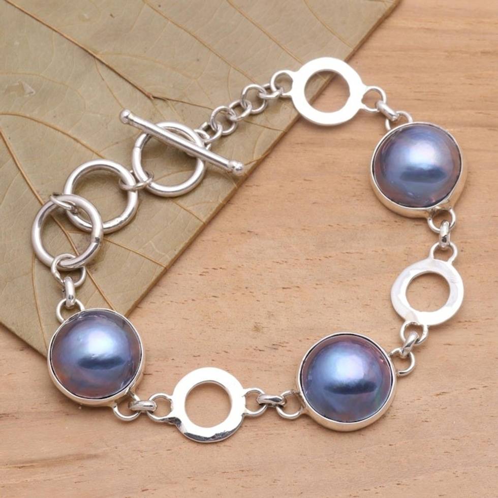Cultured Peacock Mabe Pearl Link Bracelet 'Blue Moon Nights' Item ID: 2671744806