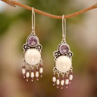 Cultured Pearl and Amethyst Sterling Silver Earrings 'Dreams' Item ID: 2671700472