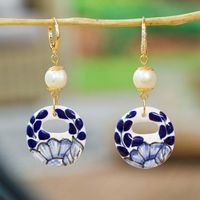 Cultured Pearl and Blue Talavera Ceramic Dangle Earrings 'Cobalt Eclipse' Item ID: 2671639866