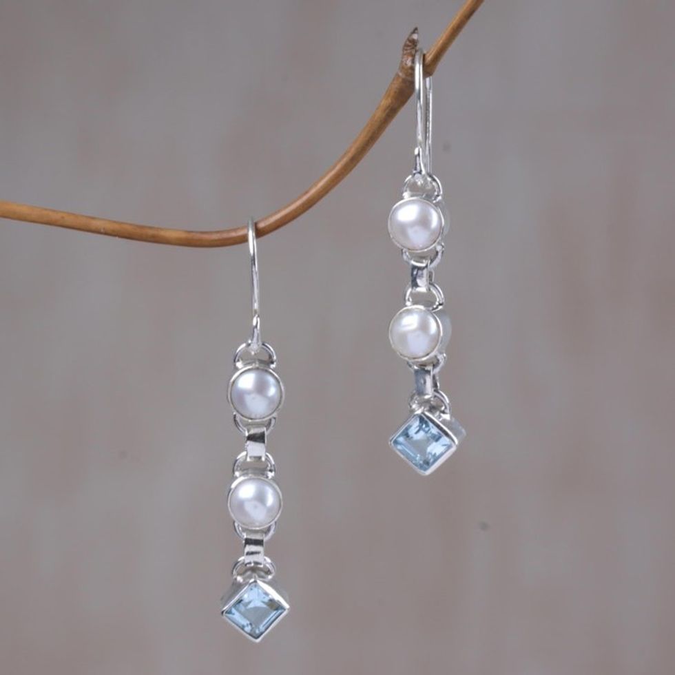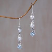 Cultured pearl and blue topaz dangle earrings 'Silver Trail' Item ID: 2671821033