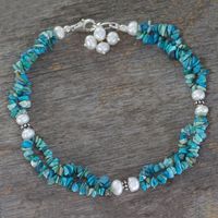 Cultured Pearl and Calcite Beaded Strand Anklet from India 'Nautical Song' Item ID: 2669943754