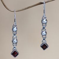 Cultured pearl and garnet dangle earrings 'Dew' Item ID: 2671701900