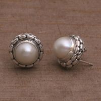 Cultured Pearl and Sterling Silver Button Earrings from Bali 'Temple Domes' Item ID: 2670222182