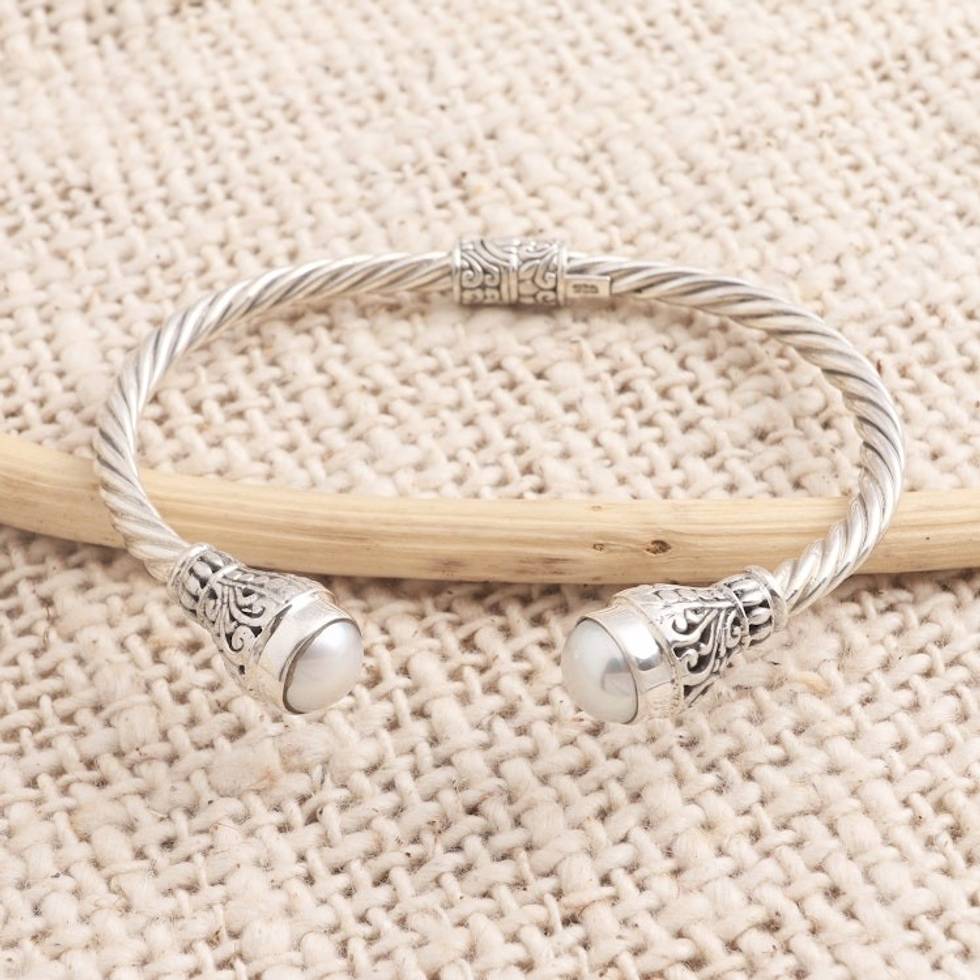 Cultured Pearl and Sterling Silver Cuff Bracelet 'Royal Torch' Item ID: 2671821599