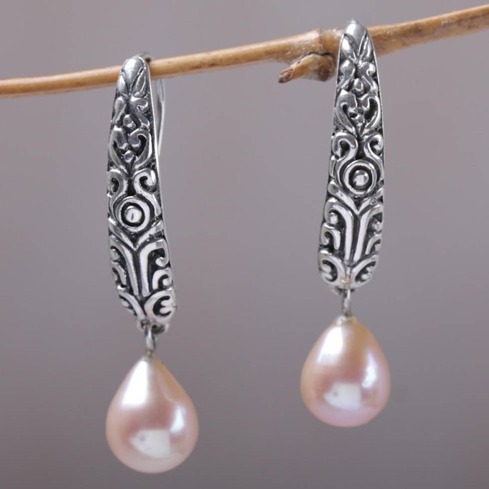 Cultured Pearl and Sterling Silver Dangle Earrings from Bali 'Drops of Honey' Item ID: 2671821346