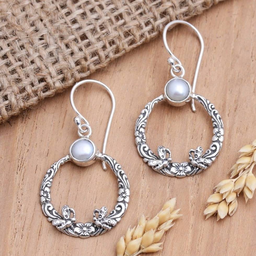 Cultured Pearl and Sterling Silver Dangle Earrings 'Glowing Garden' Item ID: 2671746730