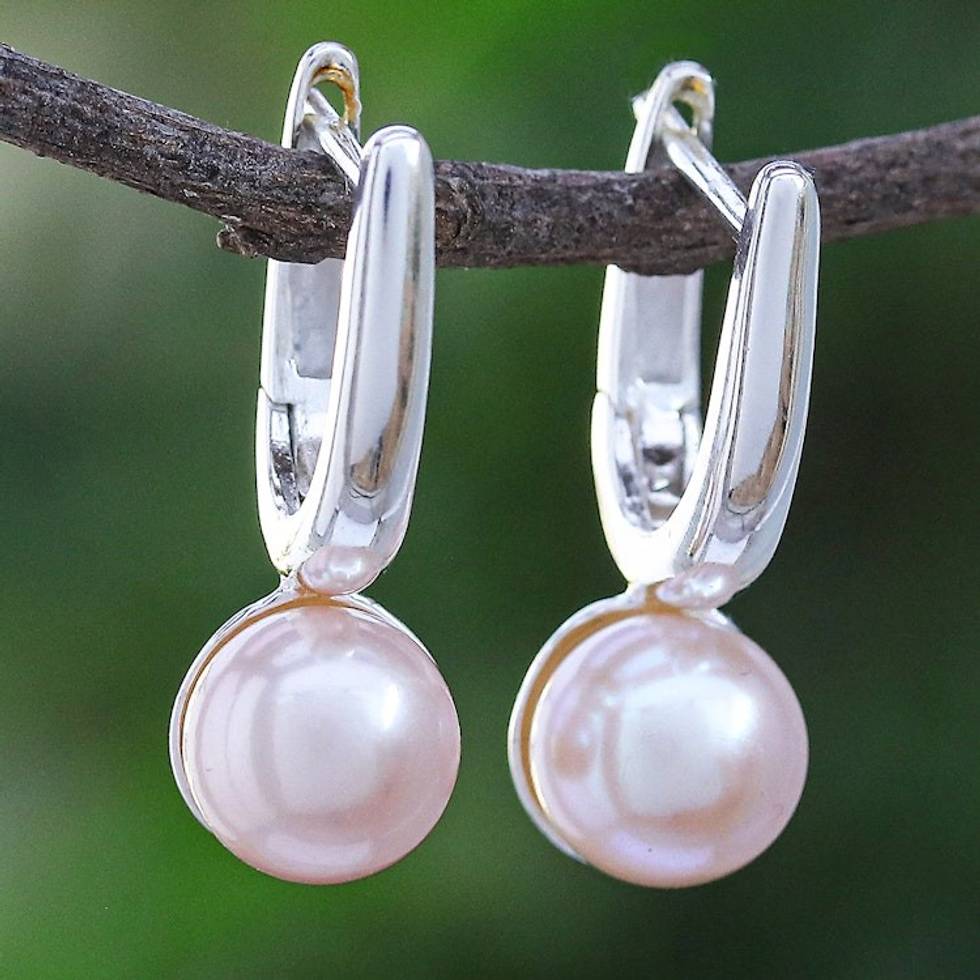 Cultured Pearl and Sterling Silver Drop Earrings 'Mood Lift in Peach' Item ID: 2671800207