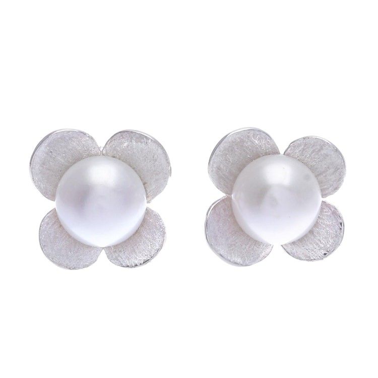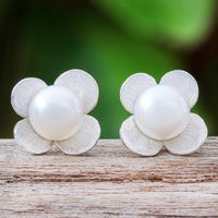 Cultured Pearl and Sterling Silver Floral-Motif Earrings 'Pearl Oasis' Item ID: 2671800320