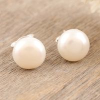 Cultured Pearl and Sterling Silver Stud Earrings from India 'Love Me Tender' Item ID: 2671625349