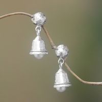 Cultured Pearl Bell Dangle Earrings from Bali 'Melodious Gleam' Item ID: 2671736837