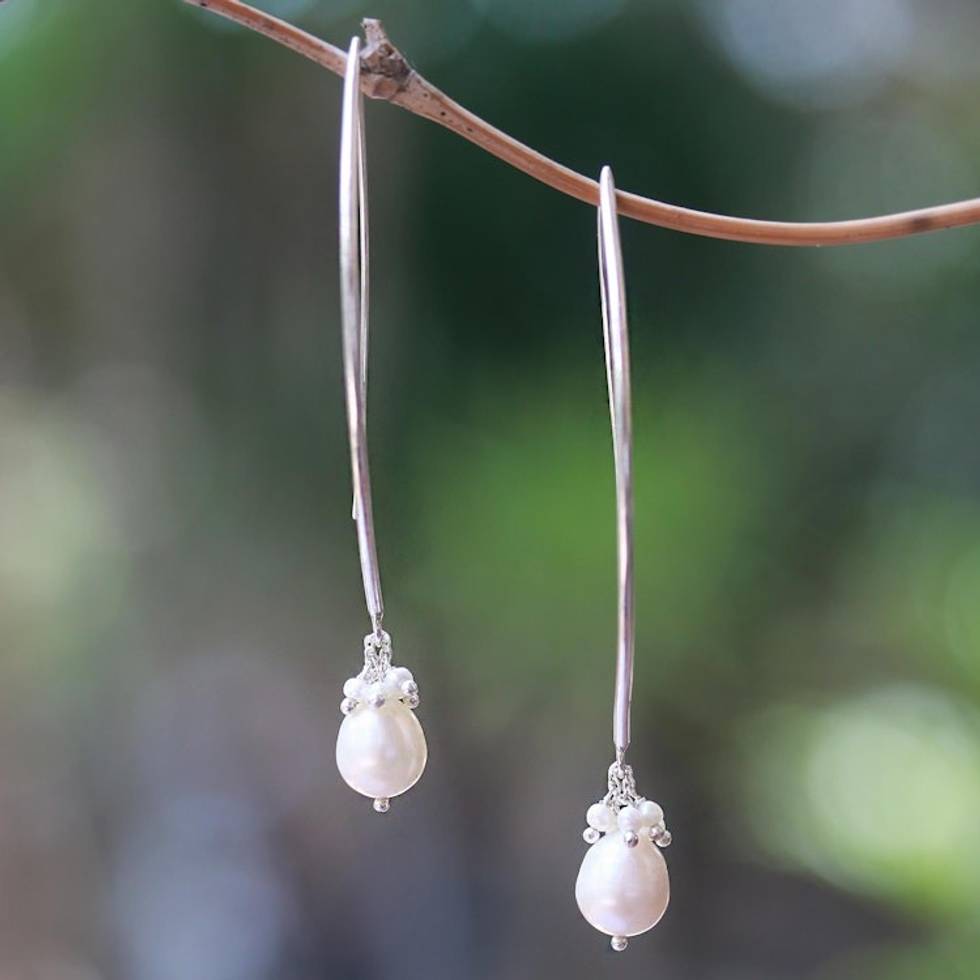 Cultured Pearl Cluster Dangle Earrings from Bali 'Glowing Fruit' Item ID: 2669921012